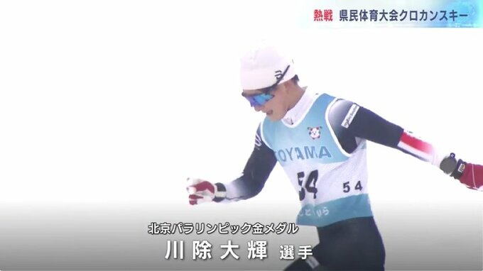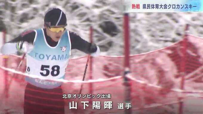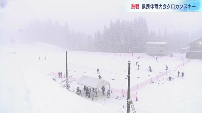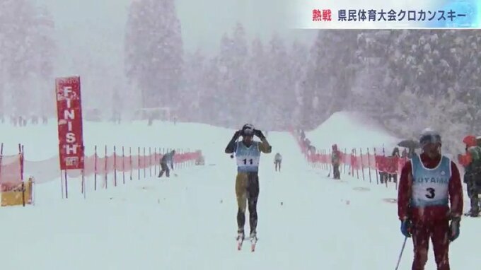 13日、降りしきる雪の中、南砺市では、県民体育大会のクロスカントリースキー競技が行われ、選手たちが力走を見せました。