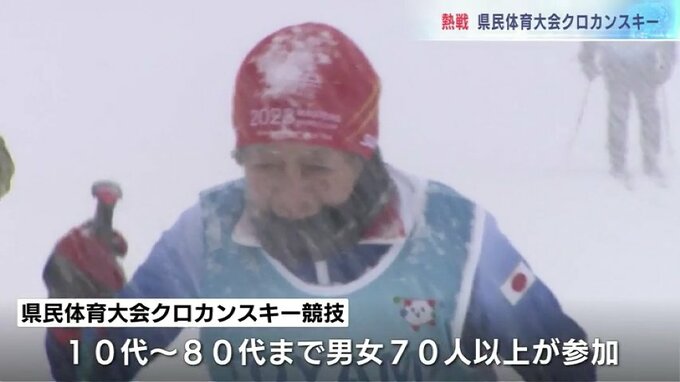 県民体育大会のクロスカントリースキー競技には10代から80代までの男女あわせて70人以上が参加しました。