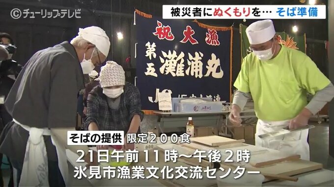 作られたそばは21日午前11時から午後2時まで、氷見市漁業文化交流センターで被災者らに無償で200食提供される予定です。