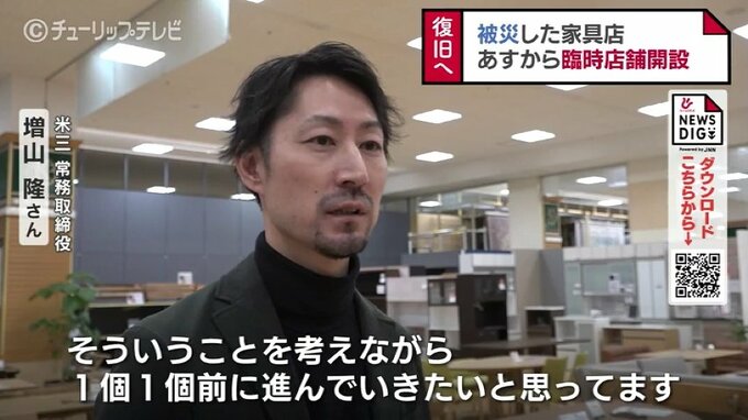 地震によって大きな被害を受けた富山市のインテリアショップが20日から臨時店舗を開設します。