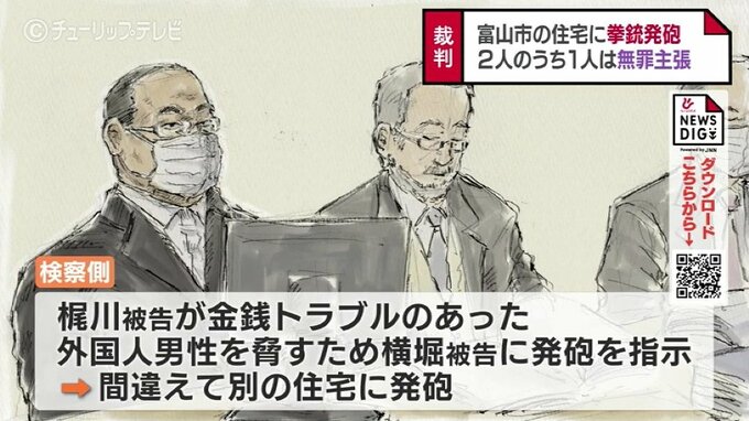 検察は、梶川被告が金銭トラブルのあった外国人男性を脅すために横堀被告に発砲を指示、横堀被告が間違えて別の住宅に発砲したと主張していて、発砲について共謀があったかどうかが争点となります。