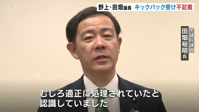 田畑裕明衆議院議員:「むしろ適正に処理されていたと認識していました。当然道義的な責任があるというふうに感じております」
