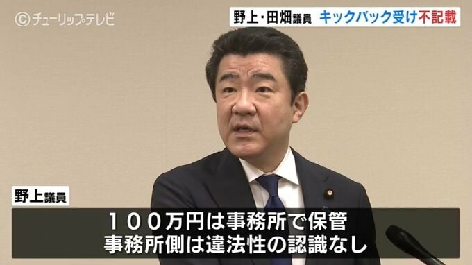 自民党派閥の裏金事件で、安倍派の野上浩太郎参議院議員と田畑裕明衆議院議員が、派閥からのキックバックについて収支報告書に不記載であったとことを認めました。