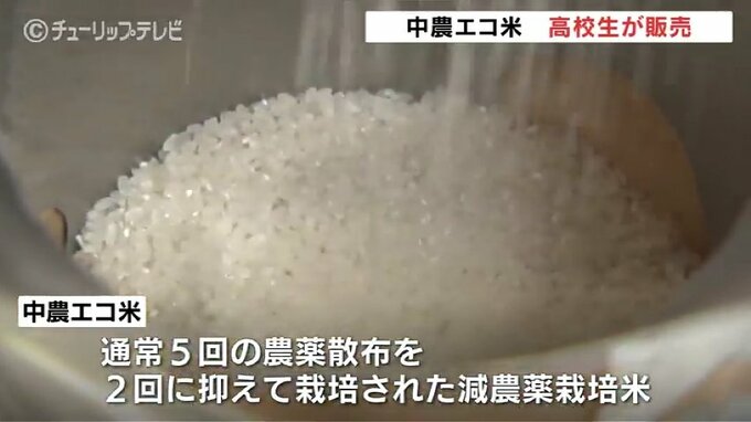 通常5回の農薬散布を2回に抑えて栽培されたお米で去年は「全国農業高校お米甲子園」で優秀賞を受賞しています。