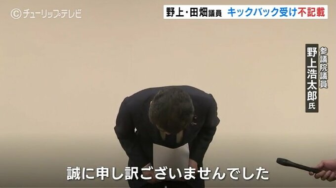 野上議員:「わたくし自身、全く認識していなかったのですが、今般、慎重に精査を致しました結果、わたくしの事務所においてこのような状況に発生したことは深く反省し、心からお詫び申し上げます。誠に申し訳ありませんでした。大きな政治不信を招いたことについても誠に申し訳なく思っています。今後、政治改革を前進させ、政治の信頼回復に向けて尽くしてまいりたいと思います」