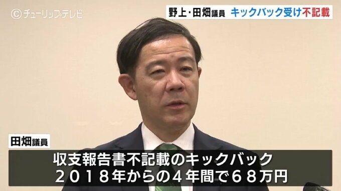 田畑氏:「現在、清和会も捜査に全面的な協力をしながら政治資金収支報告書の訂正作業を行っているところと聞いています。その作業と日を同じくして、我々の政治団体も速やかに提出をして修正する予定です」