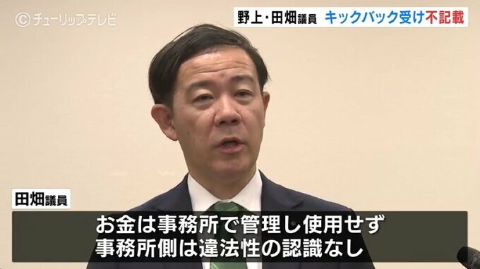 田畑氏:「事件発覚後、まさか私の事務所はないと、基本的に不記載はないと思っていました。事務所としてそういう扱いになっていたこと自身、監督責任があったのかなと。いずれにしてもあってはならないことが起きていたということ。私自身は不記載は認識していなかったということでございます」