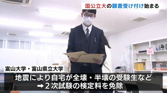 富山県内の国公立大学の富山大学と県立大学では、能登半島地震で自宅が全壊や半壊した受験生などを対象に2次試験の検定料を免除するとしています。