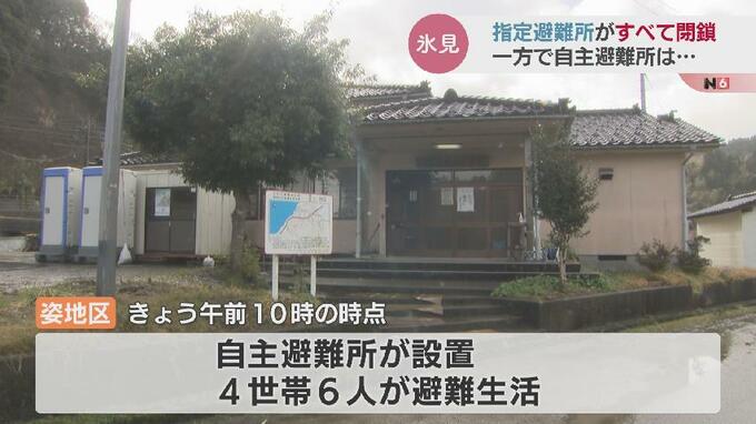 氷見市内では特に被害が甚大エリアのひとつ、姿地区に自主避難所が設けられていて、23日午前10時の時点で4世帯6人が避難生活を続けています。