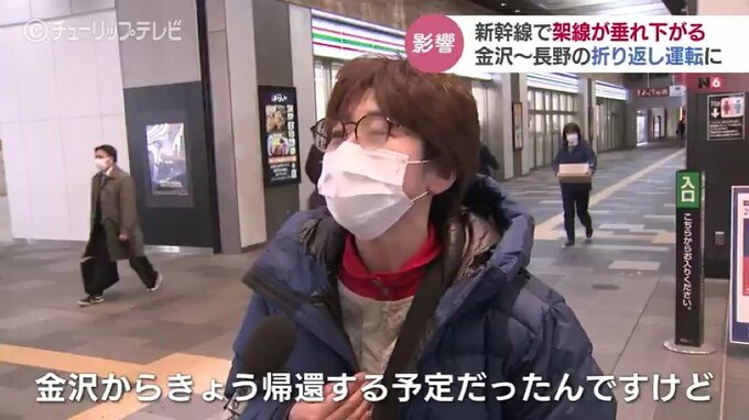 男性:「これは時間がかかるなと思って引き返して、金沢から米原、東海道新幹線で東京へ迂回しようかなと」