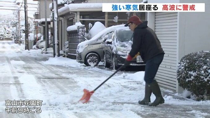 富山地方気象台によりますと、25日の県内は強い冬型の気圧配置に覆われ、雪ときどき曇りとなっています。上空には氷点下36℃以下の強い寒気が流れ込み、午前11時までの最低気温は富山、高岡市伏木ともに氷点下0・9℃でした。