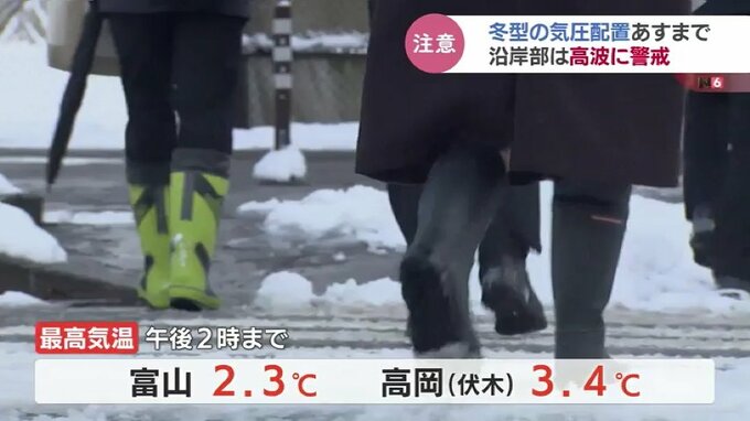 25日の富山県内は強い冬型の気圧配置の影響で断続的に雪が降り、日中は厳しい冷え込みとなりました。凍結した路面などでスリップ事故は91件。また、海上では夜遅くにかけてうねりを伴った高波に警戒が必要です。