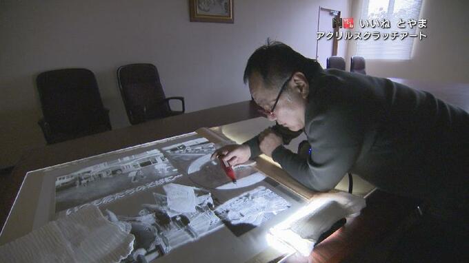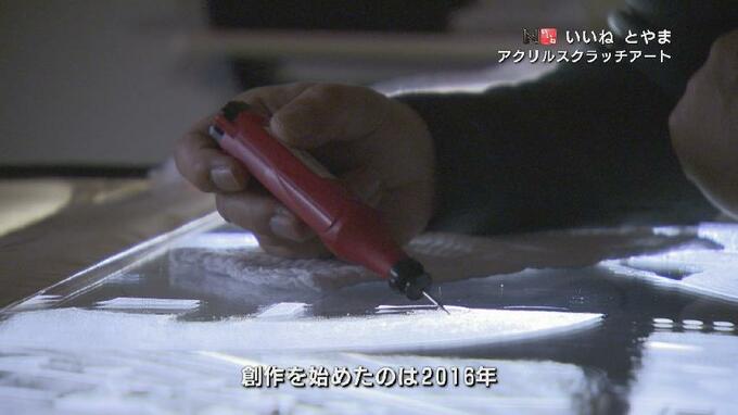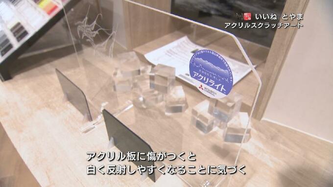 柴田さんは富山市のアクリル板製造の三菱ケミカルにつとめ、製造過程でアクリル板に傷がつくと白く反射しやすくなることに気付きました。創作を始めたのは2016年。