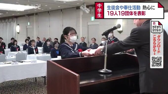 今回はG7のこどもサミットに参加した生徒や校則や学校ルールの見直しへ動いた生徒会、生徒からの意見や質問を募るオンライン目安箱を新たに設置した学校などが表彰を受けました。