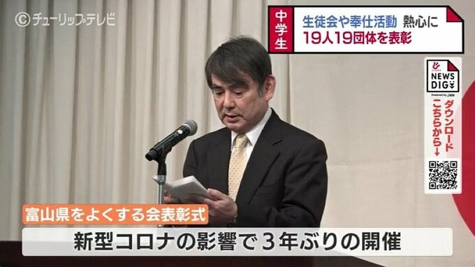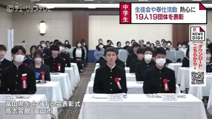 生徒会活動やボランティアの啓発などに熱心に取り組んだ中学生を表彰する「富山県をよくする会」の表彰式が富山市で行われました。