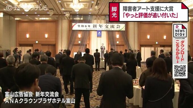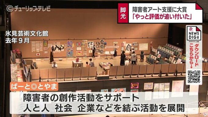 「ばーと◎とやま」は、障害者の創作活動をサポートし、障害者アートを中心に人と人、社会、企業などを結ぶ活動を展開。多様性が注目される数十年前から継続した活動であることが高く評価されました。