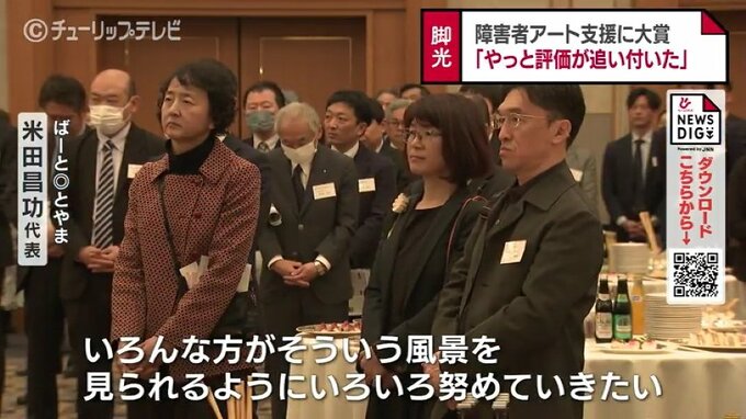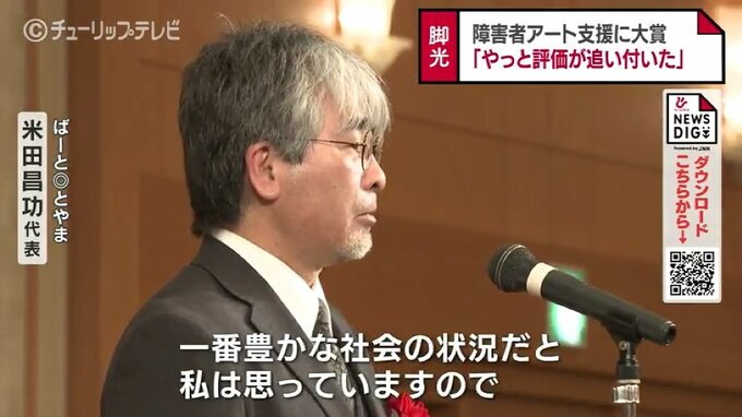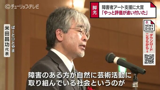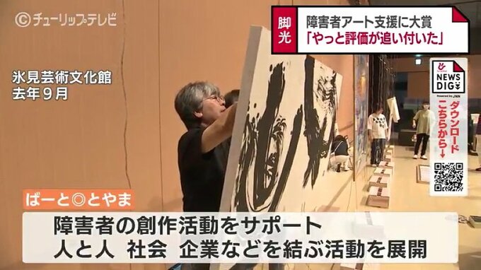 ばーと◎とやま 米田昌功代表:「当時は展望と使命感とアイデアだけで突き進んできましたが、今やっと評価が追い付いたのかなという気がしました。障害のある方が自然に芸術活動に取り組んでいる社会っていうのが一番の豊かな社会の状況だと思っていますので、いろんな方がそういうような風景を見れるようになるようにいろいろ努めていきたい」