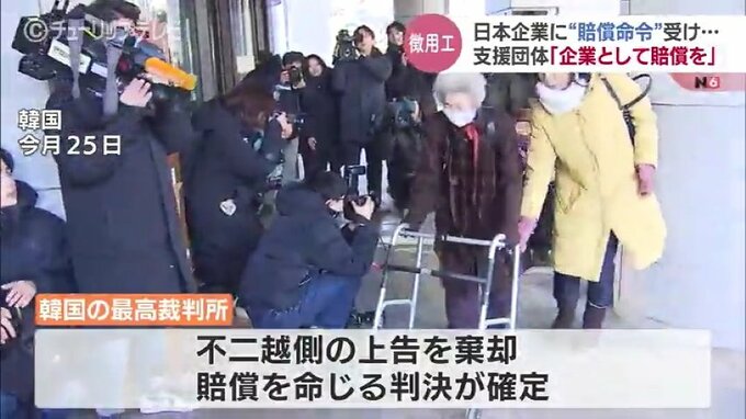 裁判は、この女性たちが強制労働をさせられたとして、機械メーカー・不二越に損害賠償を求めていたもので、韓国の裁判所はこれまで1審、2審ともに賠償を命じ、不二越側が上告していました。韓国の最高裁判所は、25日に不二越側の上告を棄却。賠償を命じる判決が確定し、原告側が勝訴していました。