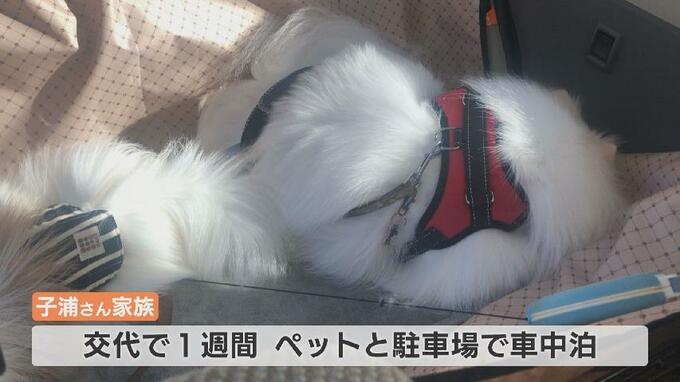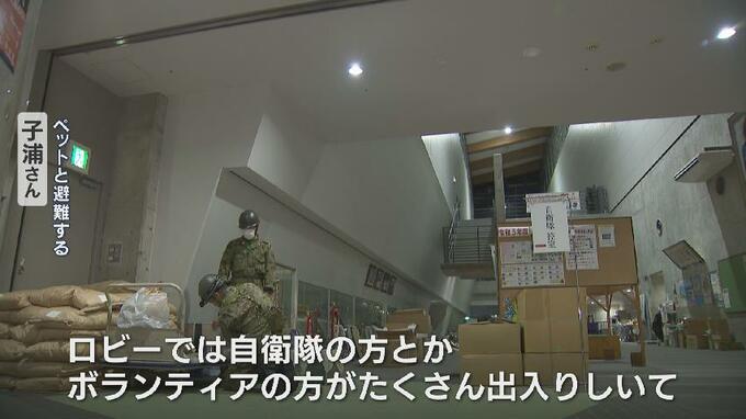 ペットを連れて避難している子浦さん: