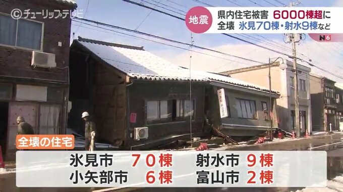 また、全壊の住宅を市町村別にみると氷見市が70棟、射水市が9棟、小矢部市が6棟、富山市が2棟となっています。