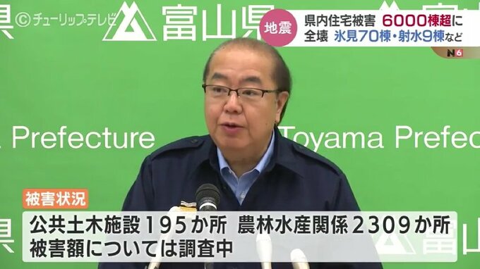 能登半島地震による富山県内の住宅への被害は、1月30日までに6000棟を超えることが分かりました。新田知事は「まだ増える」との認識を示しています。