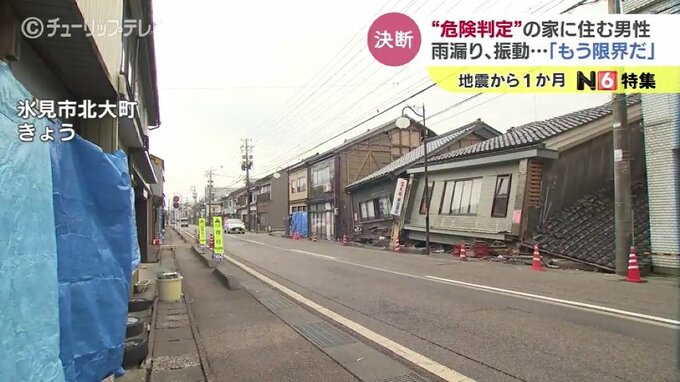 能登半島地震のあとも倒壊のおそれがある自宅に住み続ける男性が、富山県氷見市にいます。男性は一人暮らし家は傾き、隙間や雨漏りもあるのに住み続けていましたが、ついに限界を感じたようです。
