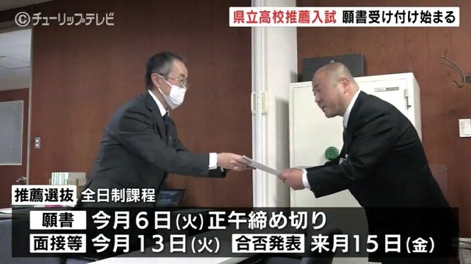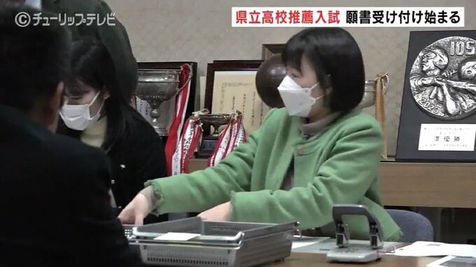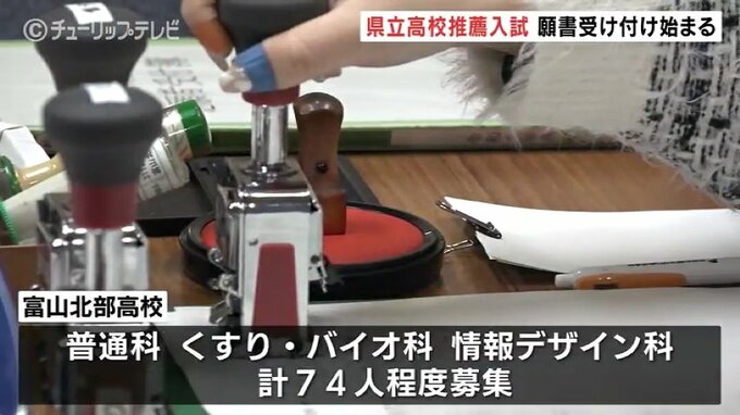 富山県立高校・全日制過程の推薦入試の願書受け付けが2日県内の各高校で始まりました。