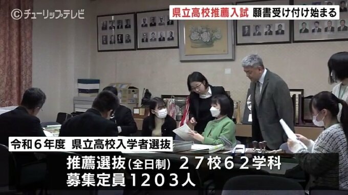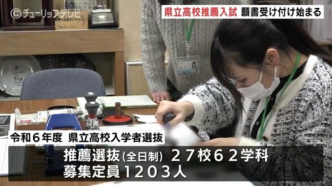 今年の県立高校・全日制過程の推薦入試は、去年と同じ27校62学科で行われ募集定員は1203人。