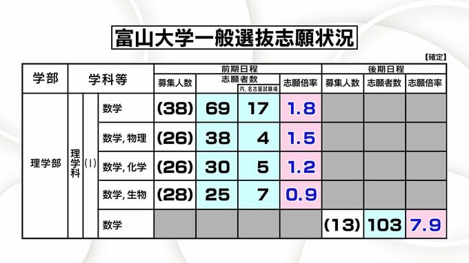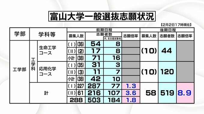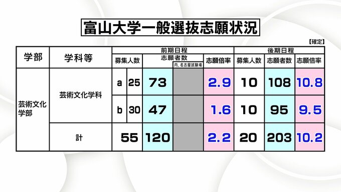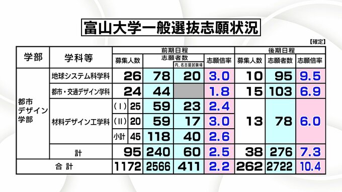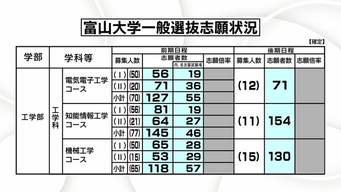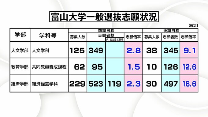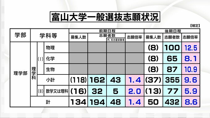 富山大学は2月13日、確定した一般入試の志願状況を公表しました。