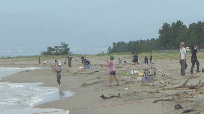 富山市の岩瀬浜海水浴場では、家族連れで海釣りや海水浴を楽しむ人の姿が見られました。日中の予想最高気温は富山、高岡市の伏木ともに32℃と、8月上旬並みとなる見込みです。
