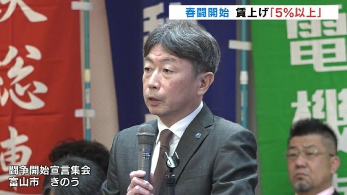 富山県内最大の労働団体・連合富山は、5日ことしの春闘の開始宣言集会を開き、浜守秀樹会長が「実質賃金が低下する中、賃金の底上げに向けて団結したい」と意気込みを述べました。