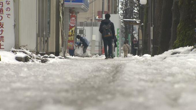 そんな中、富山大学前ではシャーベット状の雪の上を慎重に歩きながら通勤通学する人の姿が多く見られました。