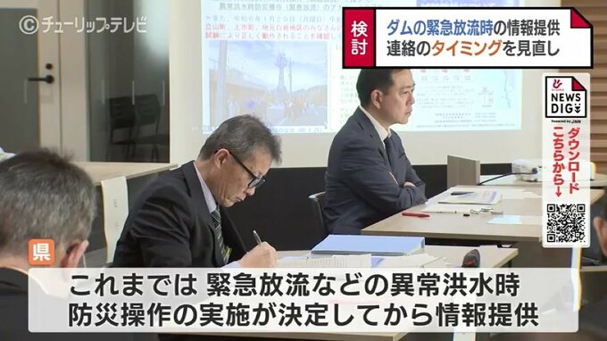 7日開かれた富山県のダム緊急放流の情報提供のあり方検討会で、富山県から市町村に情報発信するタイミングが、“緊急放流の決定”から“可能性”の段階に変更する見直し案が示されました。