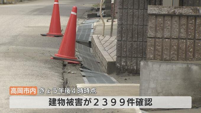 高岡市内では7日午後4時現在で、建物被害が2399件確認されています。通り沿いには、建物への立入危険を示す赤紙がいくつも張られていました。