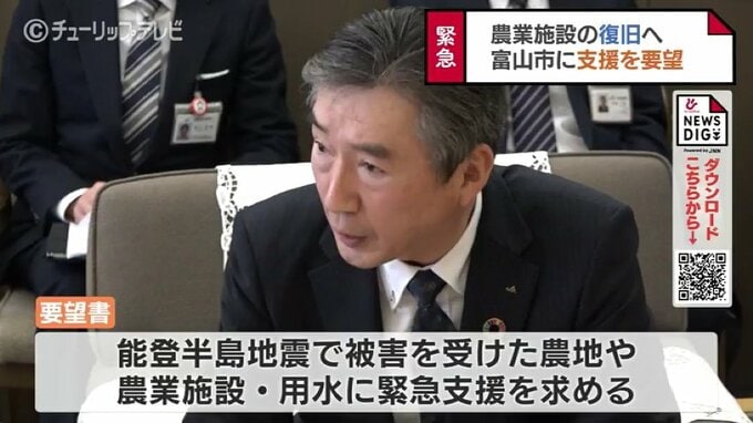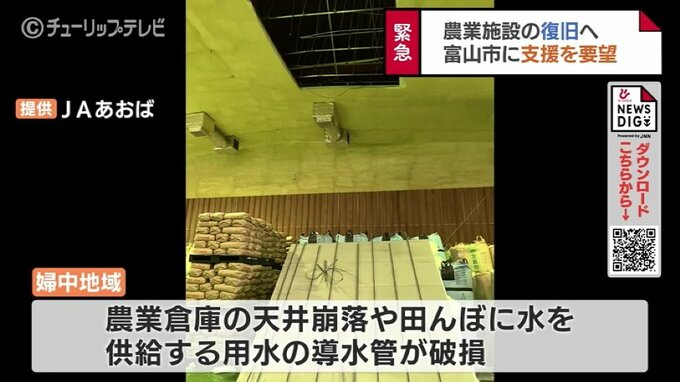 農業施設の復旧に向けて富山市に支援を要望です。