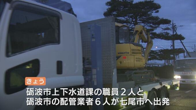 今も断水が続く、石川県七尾市にきょう向かったのは「水道復旧支援隊」と名づけられた砺波市上下水道課の職員と砺波市内の配管業者の合わせて8人です。