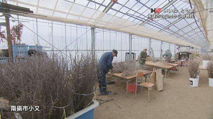 富山県南砺市の旧福光町、石川県との県境では、一足早く春を感じさせる啓翁桜の出荷が行われています。山あいから届く春の便りをカメラマンリポートでお伝えします。