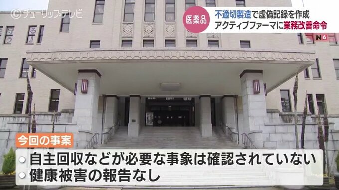 医薬品医療機器法に基づき、県から業務改善の行政処分を受けたのは、医薬品原薬を製造している「アクティブファーマ」で、富山市八尾町に工場があります。
