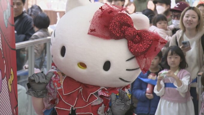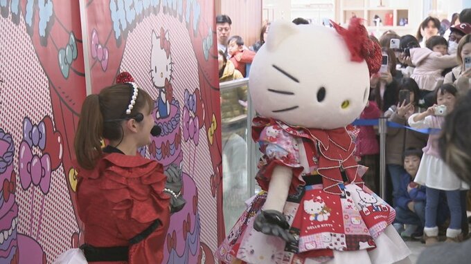 誕生50周年を記念して全国のサンリオショップを巡っているハローキティ。2月の3連休初日となる10日は富山市のデパートに登場しました。