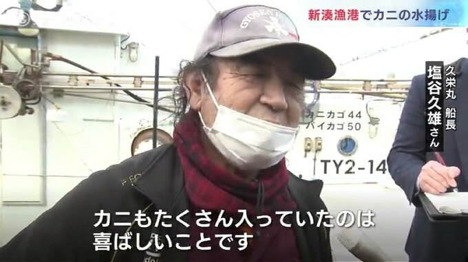 船長のカニ漁師 塩谷久雄さん:「乗組員のおかげで漁に出られて、カニもたくさん入っていたのは、喜ばしいことです。このままの状態で漁に出られればいいと思います」