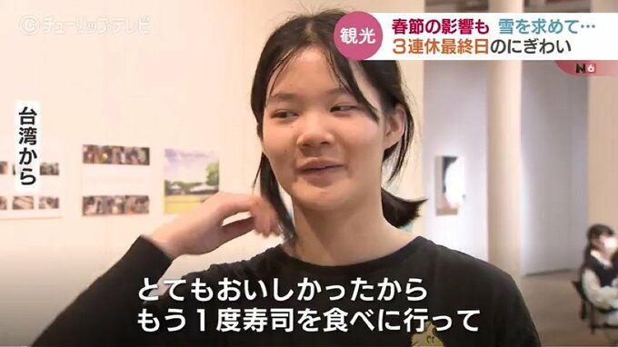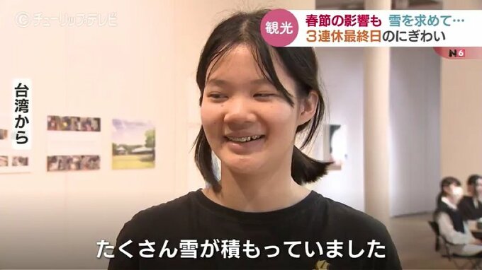 台湾からの観光客:「(きのうは)白馬にスキーをしに行きました。たくさん雪が積もっていたわ」