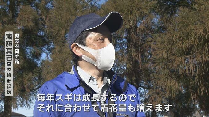 「毎年スギは成長するので、それに合わせて着花量も増えます。なので、今までつくった基準は30年前のものなんですけれども、その当時と比べると今は2倍ぐらいの飛散量になってるので」