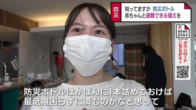 母親:「防災ボトルは、かばんに1本詰めておけば最低限自分に困らずに済むのかなと思って、自分なりに必要なものを入れてみようと思います」