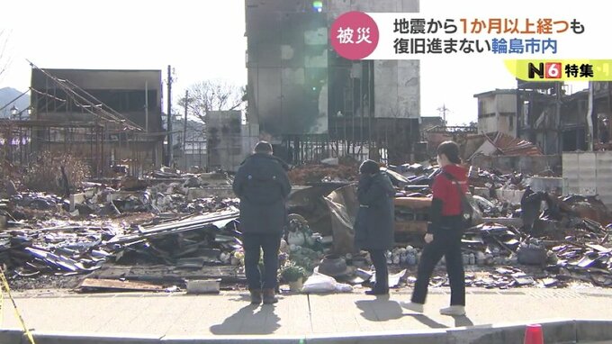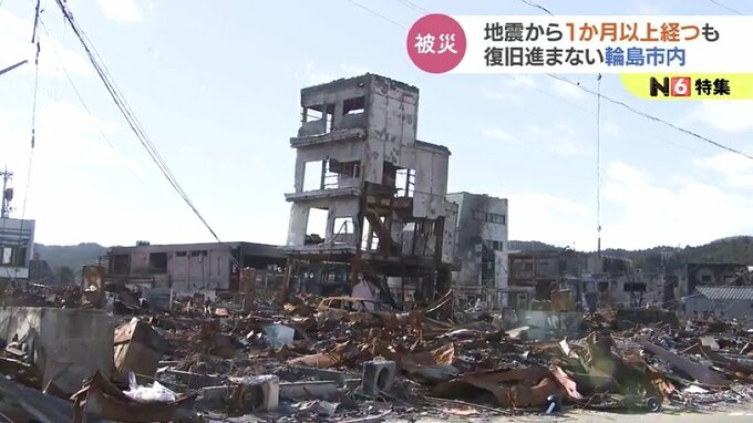 嘉藤奈緒子アナウンサー:「火災があった輪島の朝市がある場所に来ました。家屋や店などは跡形もなく焼けていて、1か月経った今も、この状態のままとなっています」