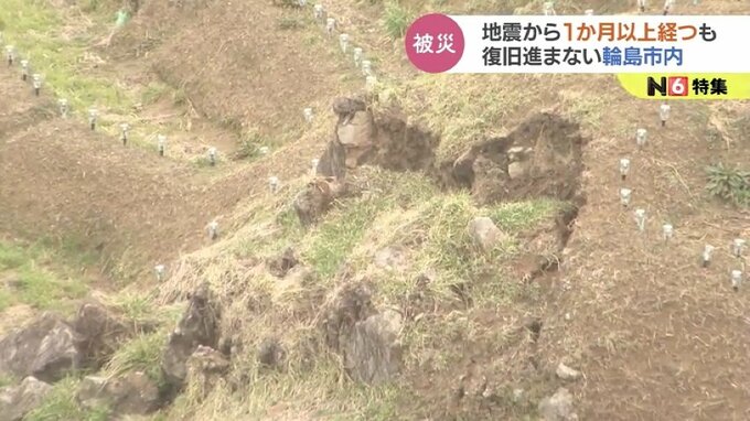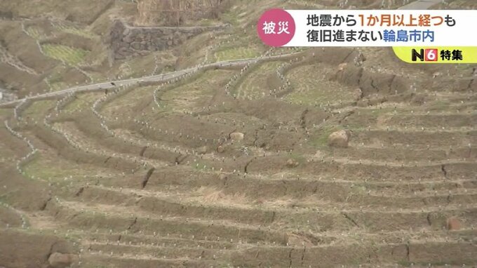 一面に広がる階段状の棚田はいたるところに大きな地割れが入り無残な姿をさらしていました。