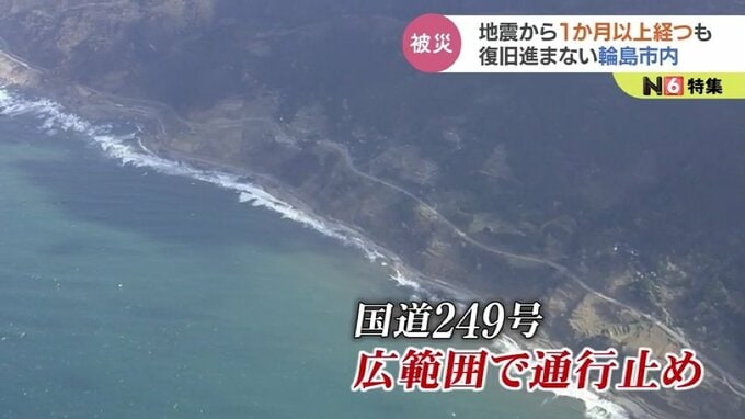 地震直後から能登半島の海岸線を走る国道249号は広範囲で通行止めとなっていました。どこまで道路は復旧しているのか、私たちは輪島市中心地から珠洲市方面に向かって車を走らせました。