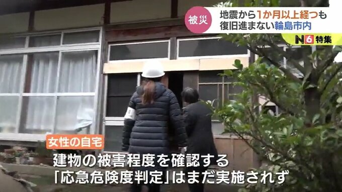 自宅は、壁や天井がはがれ一部梁が傾くなどの被害が。自治体が主体となって被災した建物の被害程度を確認する「応急危険度判定」すら行われていません。