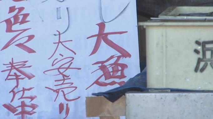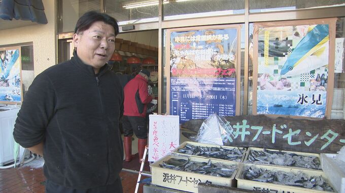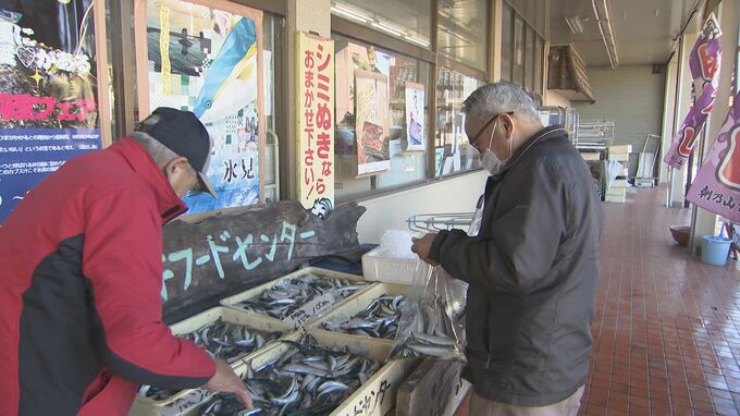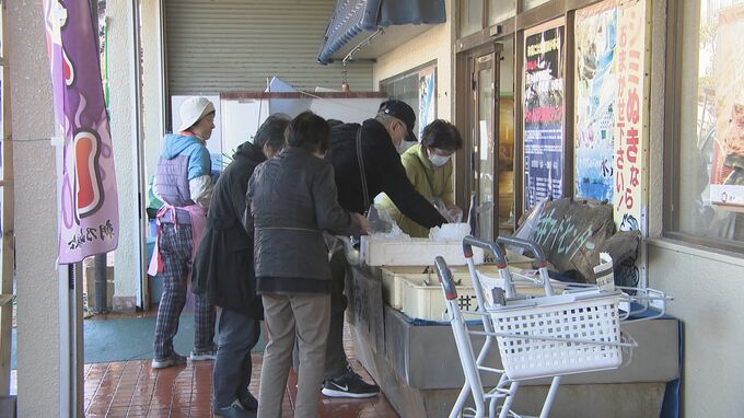 浜井フードセンター 浜井大祐さん:「うち本当は10時からなんですけど、その前からお客さん来られています。好きなだけ取ってくださいという感じです。どこから情報が入ったかわかりませんけども、穫れたその日から突然、お客さんがわっとこられて、きょうはこれだけ用意しましたけど、いつもだいたいお昼前にはなくなりますね。イワシだけ買われる方がほとんどですね。ありがたいんですけど、ほかの魚も買ってくれたらありがたいですけど。だけどほかの魚がほとんど穫れない状態でして、おそらくですが、先に網の中にイワシが入ってしまって、ほかの魚が入るスペースがなくなるんじゃないかと思います」