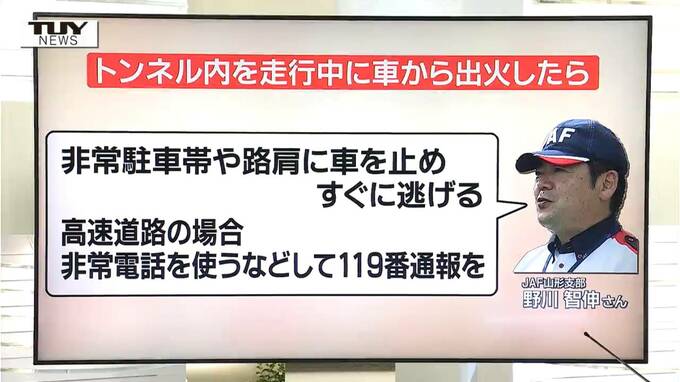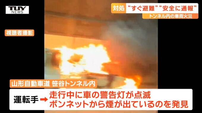 先週末、山形自動車道のトンネル内で走行中の車から出火し、全焼する火災がありました。こうした事態に遭った時、どう対処すべきなのか取材しました。