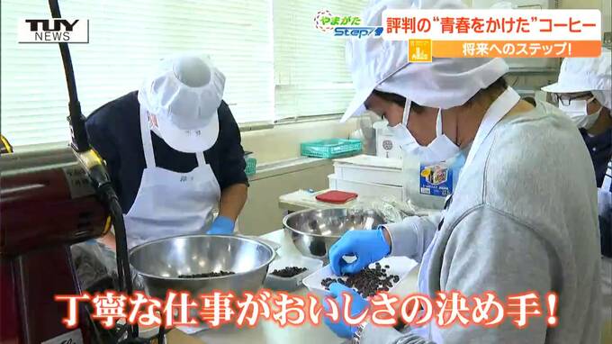 生徒たちが作っているのはブラジル産のコーヒー豆をやや深煎りした「よねようコーヒー」とブラジル産とエチオピア産の豆をブレンドした「ようねようブレンド」の2種類です。